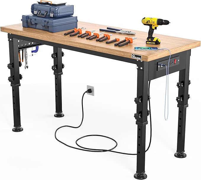 Fedmax Work Bench is the ultimate game changer for your garage or workshop. If you appreciate robust construction and versatility, this workbench is top notch. Made from rugged stainless steel and thick acacia wood, it’s rugged and stylish. It has a long service life and is easy to wash, with the protective coating.